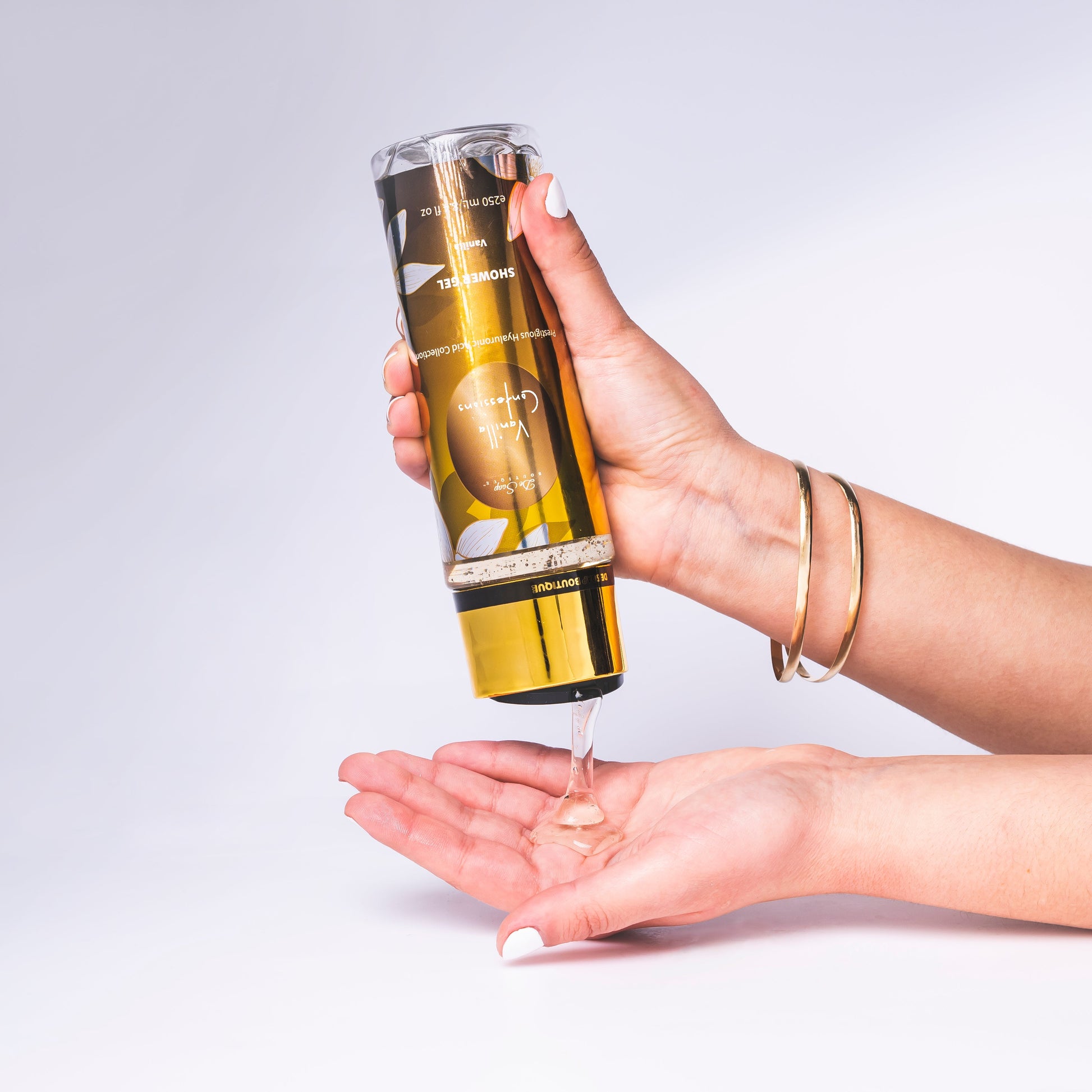 The creamy, luxurious lather releases the warm, inviting aroma of Vanilla, creating an atmosphere of coziness and comfort in your shower. This gel is a tender caress for your skin, wrapping you in the soothing scent of Vanilla that lingers, making every shower a moment of pure bliss.